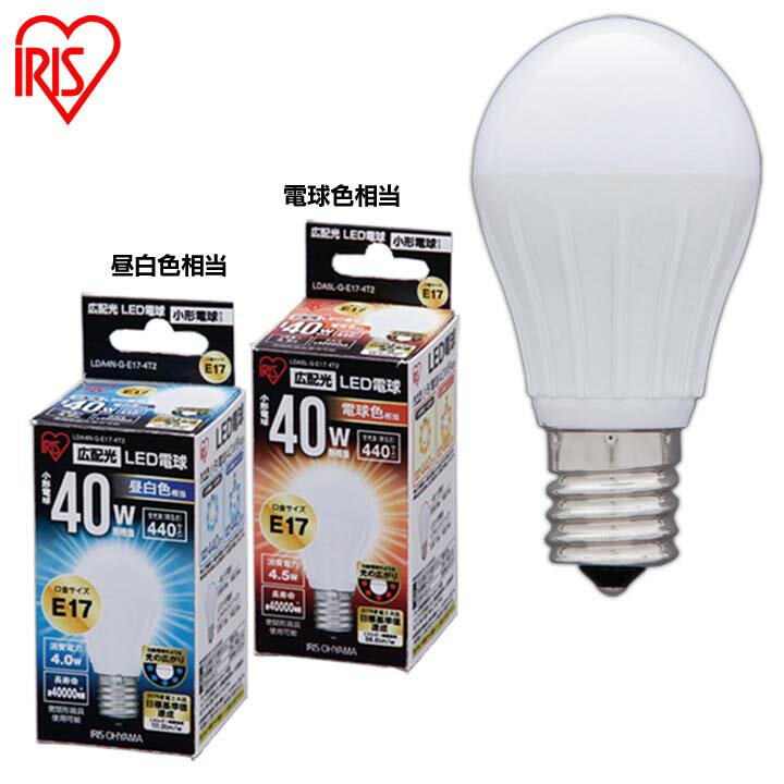 LED電球 E17 40W相当 小形電球 広配光昼白色・電球色 LDA4N-G-E17-4T2・LDA5L-G-E17-4T2 アイリスオーヤマ電球 LED 照明 インテリア 小型 長寿命 省エネ 密閉型器具対応 断熱材施工器具対応 E17口金
