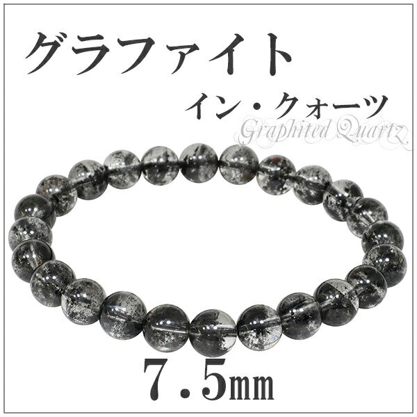 ヒマラヤ チベット産 7.5mm 17cm グラファイト イン クォーツ ブレスレット レディースMサイズ 天然石 パワーストーン 石墨入り水晶 黒鉛 グラファイトブレスレット 天然石ブレスレット プレゼント 人気