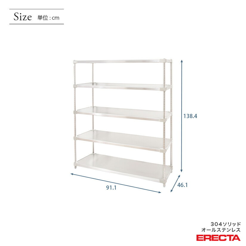【送料無料】 304ソリッドオールステンレスエレクターシェルフ W911xD461xH1384mm PSポール DB付 5段 スチールラック